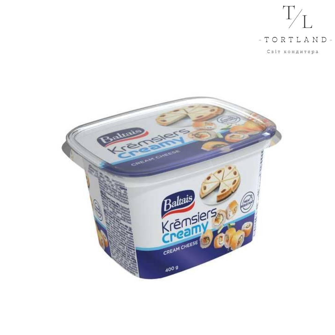 Крем-сир Baltais Cream cheese Creamy 24% 0.4 кг – сирний продукт м’який, має вершковий смак, малу вологість, стабільну структуру.