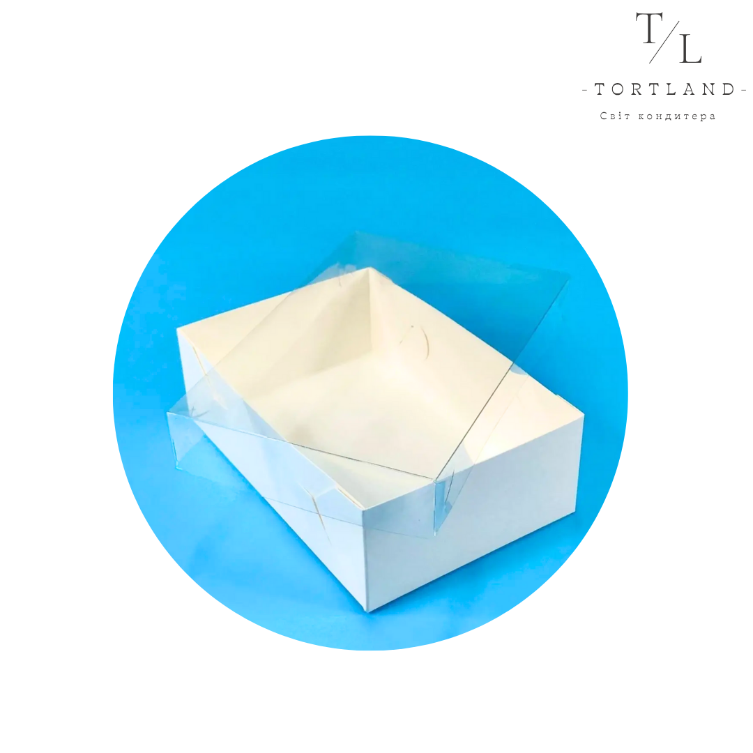 Біла коробка з прозорою кришкою 18×12×6 см