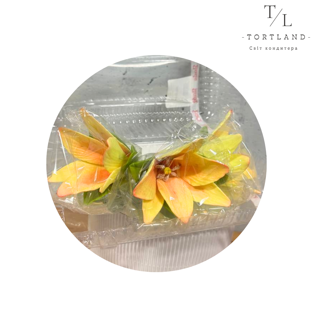 Цукрова прикраса “Лілія лимонна з листочками L-80 мм”, 3 шт