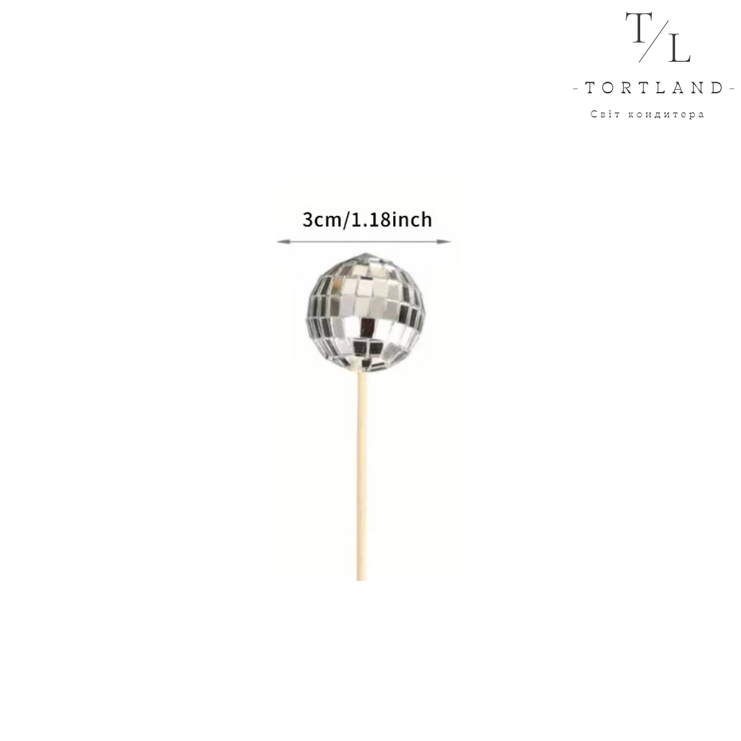Диско куля на шпажці срібло 3 см, 6 шт.
