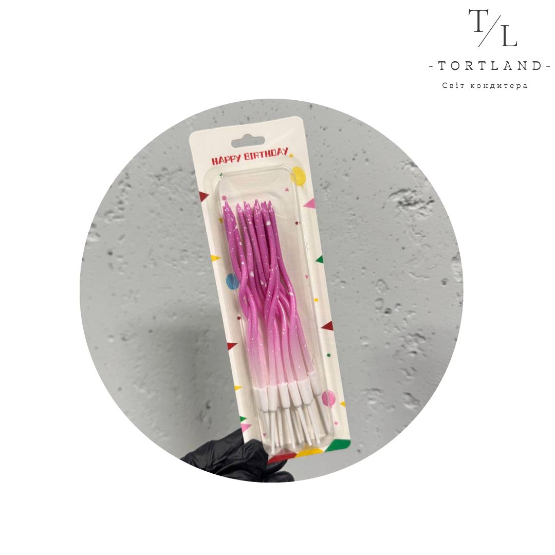 Набір свічок хвилясті 15 см, 12 шт рожеві в білі краплі