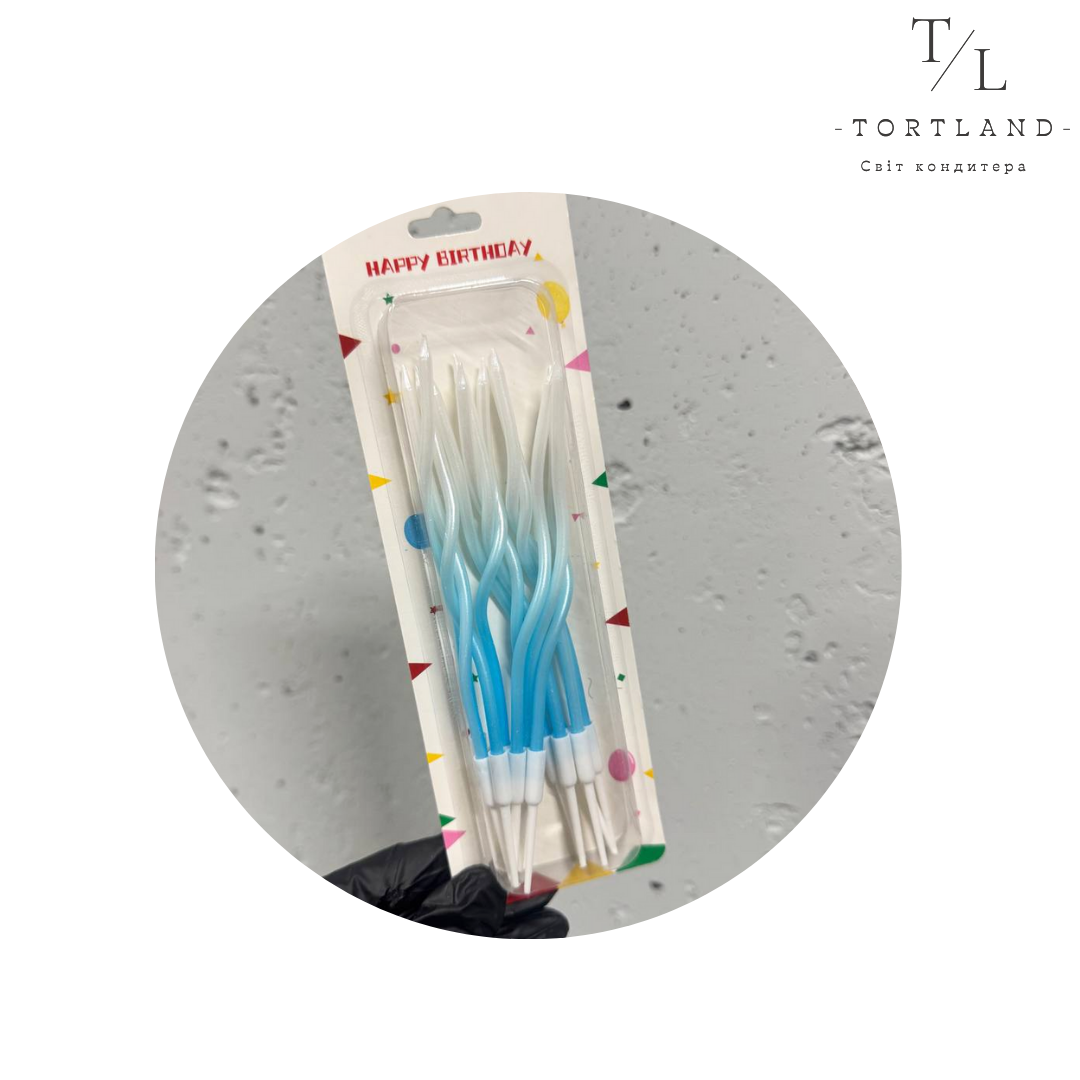 Набір свічок хвилясті 15 см біло-блакитні, 12 шт