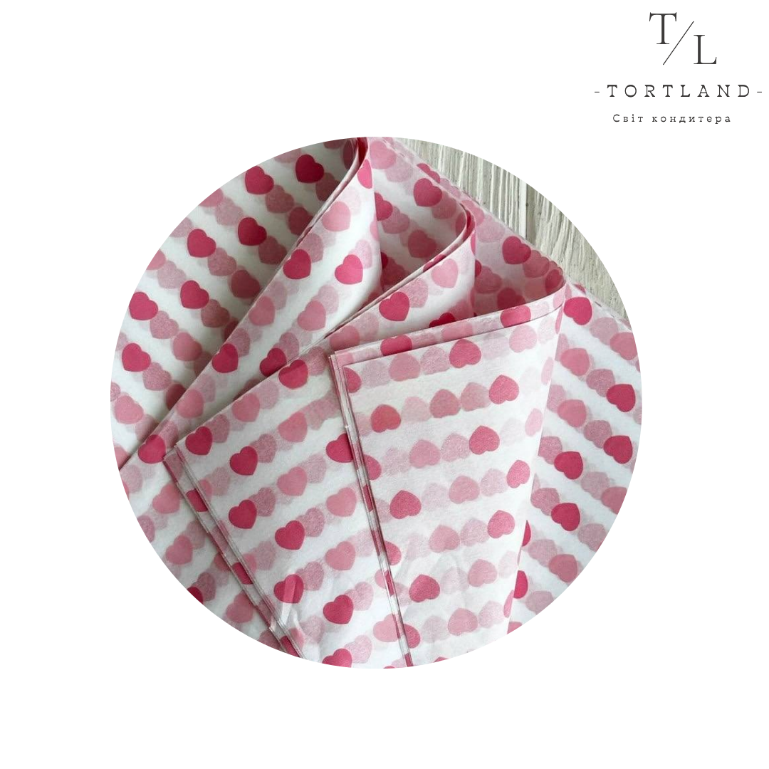 Папір тіш’ю , 50х70 рожеве сердечко , 5 шт
