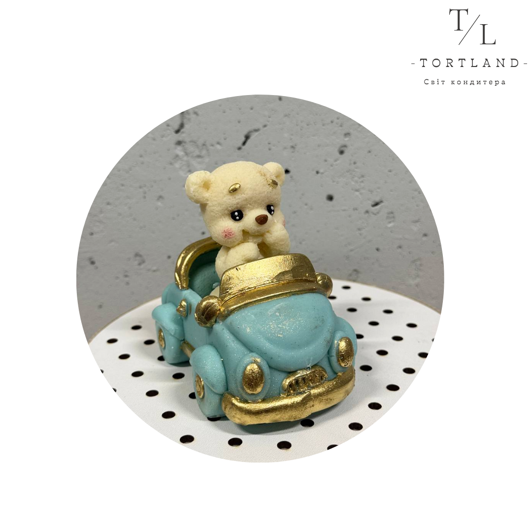 Шоколадна фігурка “Ведмедик 1 Білий на блакитній машинці”