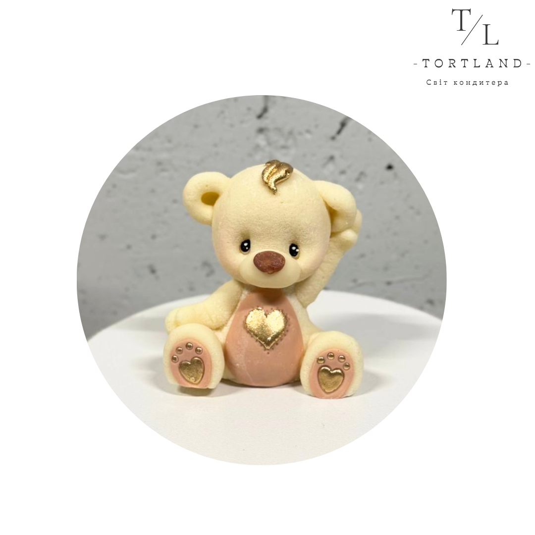 Шоколадна фігурка “Ведмедик зі сердечком біло-коричневий”